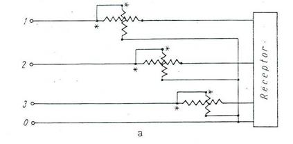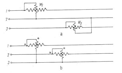 Fig.8.9 - Scheme de conectare la retea a wattmetrelor pentru