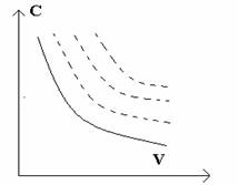 (a) in cazul bunurilor de stricta necesitate, dependenta cererii in functie de venit (C1), arata ca pe masura cresterii veniturilor, cererea pentru aceste bunuri creste intr-o proportie mai slaba, tinzand sa se plafoneze. Dependenta dintre venit si cerere, in acest caz, poate fi exprimata sub forma unei curbe exponentiale cu plafonare. Curba cererii, folosind relatia nr.