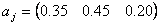 2. Se construieste vectorul linie cu ponderile de piata a celor trei produse la momentul initial: