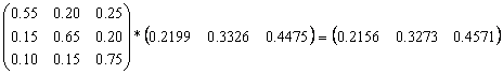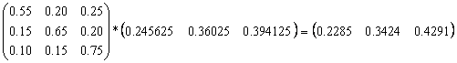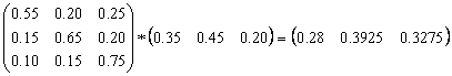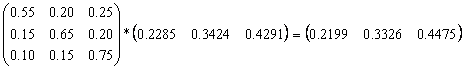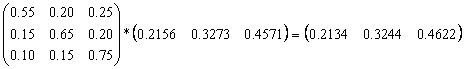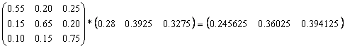 Pasul 3 - se determina ponderea pe piata a produselor dupa prima perioada. Pentru a obtine ponderea pe piata a produselor pentru perioada urmatoare, rezultatul anterior va fi inmultit cu matricea probabilitatilor de tranzitie de la o stare la alta.