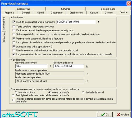 Conduc notele de transfer se intra intai in Service/ Devize lucrari, se completeaza antetul devizului, se adauga operatiunile aferente.