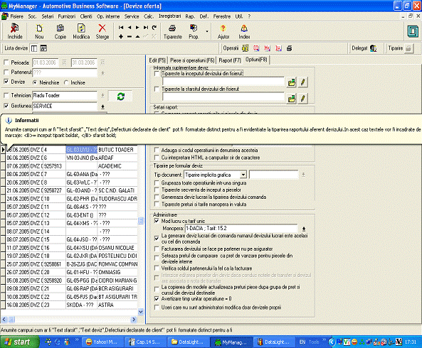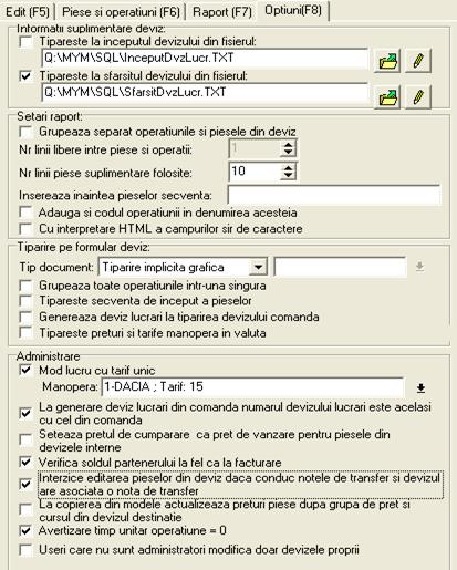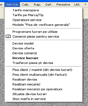 - Tiparire pe formular - respectiv se pot : grupa operatiunile, generarea automata a devizului lucrari la tiparirea devizului comanda