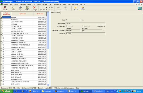 -se alege din lista Numele manoperei cu tariful pe care vrem sa-l practicam.
