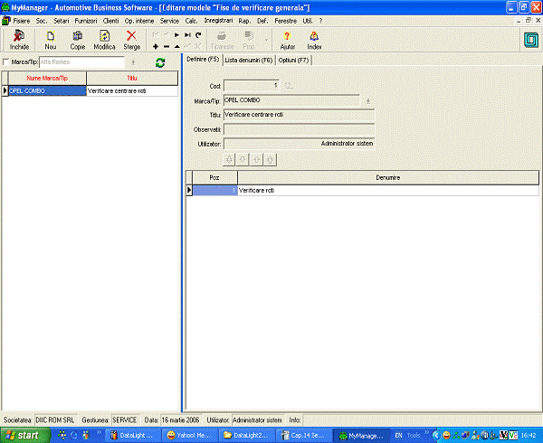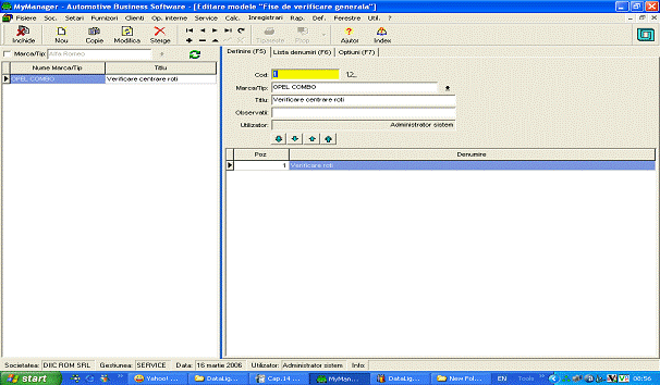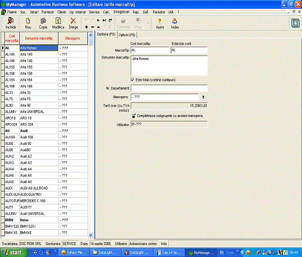 In acest meniu putem definii mai multe tarife pe care le vom aplica in viitor la anumite lucrari in functie de complexitatea lucrarii, in functie de client, in functie de autovehicul sau in functie de contractele incheiate cu diferite firme sau societati de asigurari