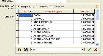 -Tarif orar-apare automat tariful orar corespunzator manoperei.