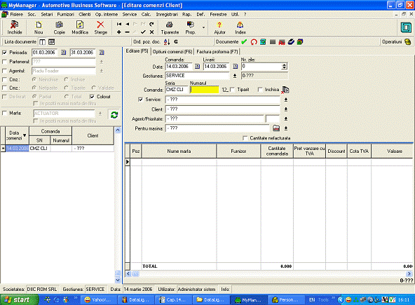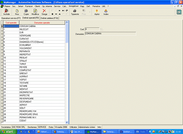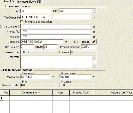 -se completeaza campurile afrerente "Operatiuni service"din partea dreapta sus a ecranului.