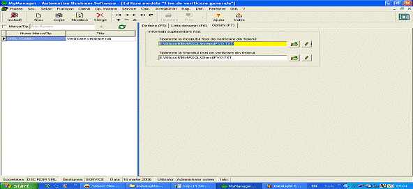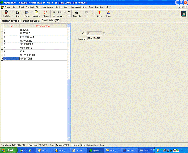In acest meniu ne putem definii toate operatiunile SERVICE pe care