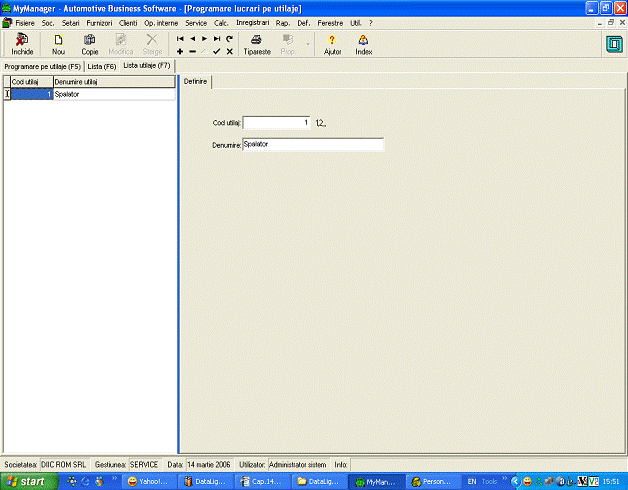 -se apasa tasta F10 (de pe tastatura)-Definiri ateliere.