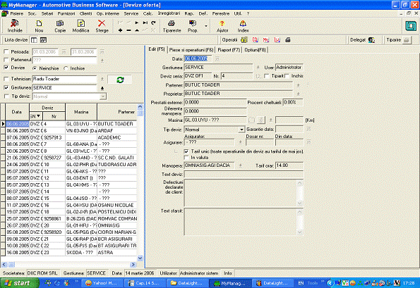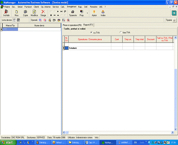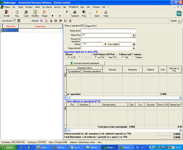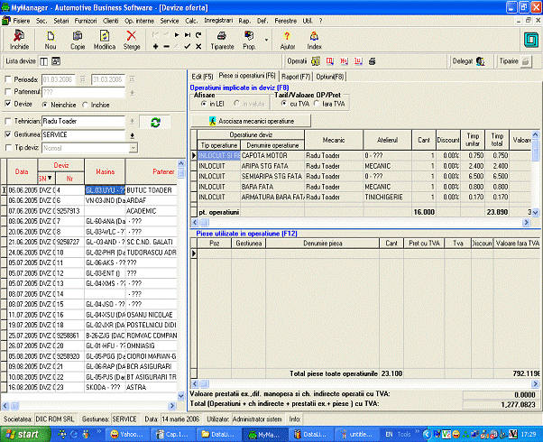 Conduc devizele lucrari, se intra intai in Service/ Devize lucrari, se completeaza antetul devizului, se adauga operatiunile si piesele.