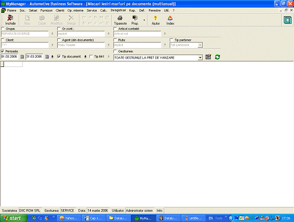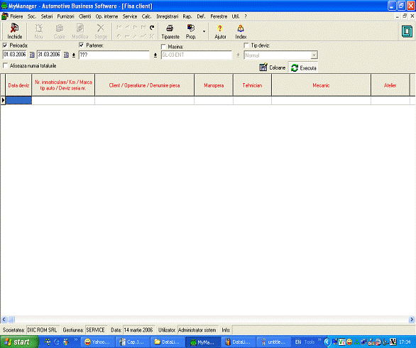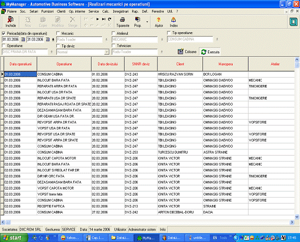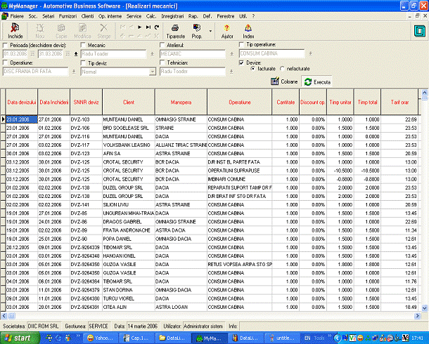 Acest raport ne arata toate realizarile din service. Putem vedea realizarile unui atelier, sau a unui mecanic pe o perioada determinata.