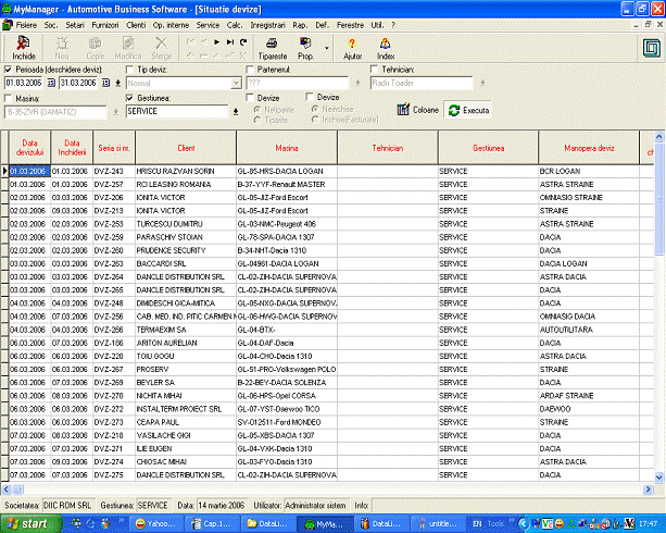 Nota! Putem alege numai numarul de inmatriculare, urmand ca din raportul facut sa aflam celalalte date despre client.
