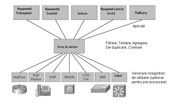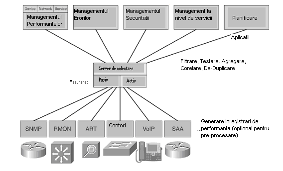a) Monitorizarea performantelor - colectarea activitatilor din retea la nivelul fiecarui element pentru: