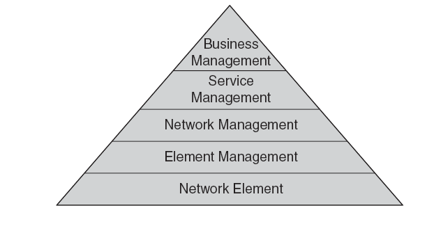 Ierarhia TMN este un model de referinta care specifica un set de nivele de management care se construiesc unul peste celalalt si adreseaza diferite aspecte ale managementului de retele care trebuie avute in vedere. Mai jos este prezentata aceasta ierarhie. In realitate, aceste nivele nu pot fi atat de clar separate in sistemele care implementeaza functionalitatea corespunzatoare.