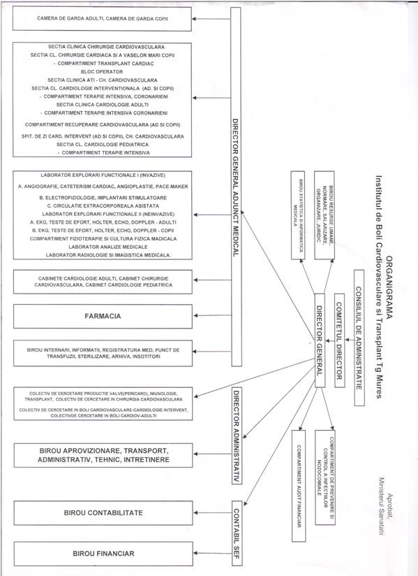In anul 2002 Centrul de Boli Cardiovasculare din Targu Mures devine Institutul de Boli Cardiovasculare si Transplant cu urmatoarea structura: