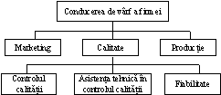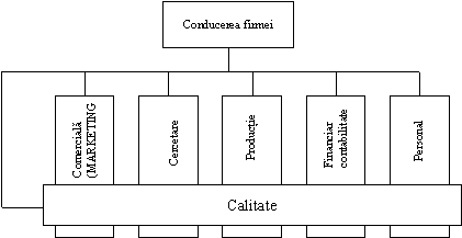 -infiintarea unui compartiment distinct cu determinarea "calitatii", seful acestuia avand responsabilitatea coordonarii tuturor activitatilor corespunzatoare functiunii calitate, precum si a supravegherii activitatii compartimentelor de inspectie, engineering, fiabilitate si de control al calitatii. In unele firme, acest compartiment a fost denumit "asigurarea calitatii" (fig. 5.4).
