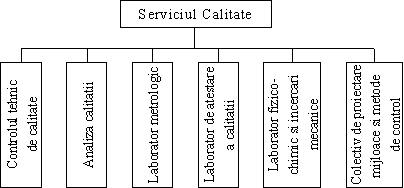 In cadrul intreprinderilor mari au fost create compartimente si chiar directii "calitate" cuprinzand servicii delimitate pe tipuri de activitati, procese sau produse. Un serviciu "calitate" dintr-o mare intreprindere din Romania este prezentat in fig. 5.6.
