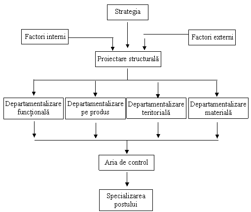 Proiectarea structurii organizatorice a intreprinderii este influentata de urmatorii factori interni si externi: