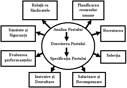 Baza managementului resurselor umane intr-o organizatie o constituie procesul de "analiza a postului" prin care se culeg si se analizeaza sistematic informatii legate de: continutul posturilor, cerintele impuse resurselor umane si contextul in care se desfasoara activitatea postului. Pentru a intelege mai bine procesul de "analiza a postului" consideram necesare cateva precizari legate de termenii: "post" si "pozitie". Postul, asa cum s-a mai aratat, este un ansamblu de pozitii similare cuprinzand sarcini comune, atributii si responsabilitati, ce pot fi realizate de un grup de persoane. Pozitia este o "colectie" de sarcini, atributii si responsabilitati indeplinite de o singura persoana. Datorita diferentei de sens semantic foarte redusa cei doi termeni sunt intersanjabili in multe situatii. Identificarea diferentei se poate face luand in considerare urmatorul caz: daca un magazin alimentar are 7 lucratori la 7 case de marcat, atunci magazinul are 7 pozitii asociate unui singur post, cel de casier.