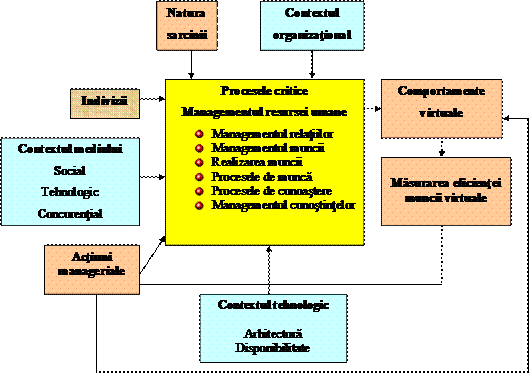 Esenta organizatiilor virtuale este metamanagementul activitatii orientate spre obiect intr-o maniera independenta de mijloacele pentru realizarea acestei activitati. Metamanagementul este managementul unei activitati organizate virtual. Activitatile virtuale contin un set de cerinte, un set de termeni care satisfac cerintele si o procedura care suprapune termenii cerintelor respective. O organizatie virtuala este o combinatie de persoane sau organizatii diverse, localizate pe o arie geografica mare, care au in plan atingerea unui scop comun prin contributia cu competentele si resursele specifice fiecaruia. Partenerii dintr-o organizatie virtuala se bucura de un statut legal si depind de conexiuni electronice (infrastructura TIC) pentru coordonarea activitatii lor. Organizatia virtuala reprezinta o retea organizationala structurata si administrata astfel incat sa opereze in stransa legatura cu clientii si alti parteneri externi sub forma unei organizatii complete si identificabile.