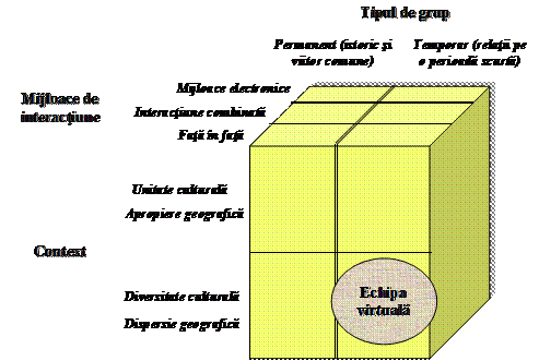 v Cultura echipei. Orice combinatie de mijloace de comunicare sunt utilizate pentru cresterea performantelor echipei virtuale, trebuie sa se aiba in vedere cum vor influenta aceste mijloace cultura mediului echipei.