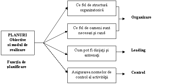 Planificarea este functia manageriala de start – kilometrul zero pentru management. Înainte ca un manager sa organizeze, sa coordoneze si sa controleze el trebuie sa aiba un plan, altfel, activitatile ulterioare (celelalte functii manageriale) nu au scop sau directie. Ceea ce de fapt se realizeaza în continuare sunt deciziile stabilite în planificare.
