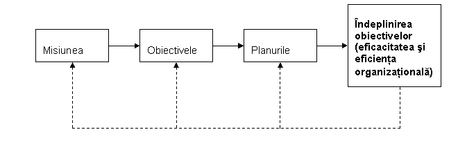 Planificarea include obiectivele si planurile. Obiectivul reprezinta un rezultat final in viitor, pe care organizatia doreste sa-l obtina. Planul, intruchipeaza mijloacele sau instrumentele nascocite, create pentru a incerca sa se atinga obiectivele.
