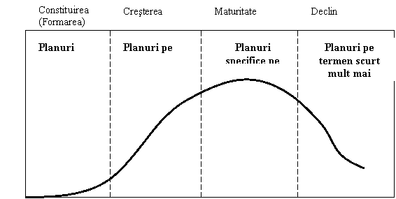 Cand organizatia este in faza de maturitate, capacitatea de predictie, de previziune este de cea mai mare importanta si organizatia are aceasta capacitate. De asemenea, in aceasta etapa sau faza a ciclului de viata planurile specifice sunt cele mai potrivite, in timp ce, de exemplu, in faza sau etapa de formare organizatiei, managerii pun accent si pretuiesc planurile directionale. In etapa de constituire este dorita si necesara flexibilitatea, intrucat disponibilitatea resurselor este mult mai incerta, iar identificarea clientilor si consumurilor este mult mai neclara, indoielnica, de aceea obiectivele vor fi mai mult sub forma de intentii. Planurile directionale in aceasta faza permit managerilor sa faca schimbari in functie de necesitati.