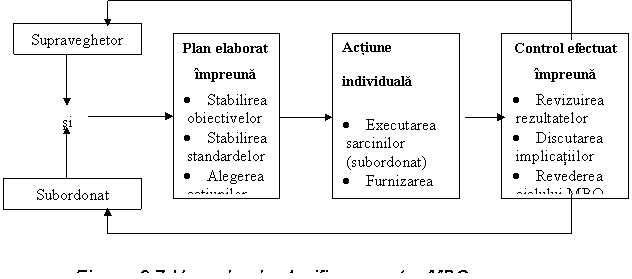 Acest proces il reprezentam in fig. nr.7. De notat ca supraveghetorul si subordonatul stabilesc impreuna planurile si impreuna controleaza rezultatele. Ei sunt de acord asupra obiectivelor de prima importanta pentru performanta subordonatului impreuna cu programul calendaristic - orarul - privind realizarea acestora si criteriile care vor fi folosite in evaluarea rezultatelor.