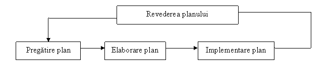 Planificarea implica realizarea urmatoarelor faze: pregatirea planului, elaborarea planului, implementarea planului, revederea planului.(fig. 3).