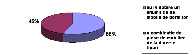 Rezultatele obtinute nu confirma ipoteza avansata, totusi diferenta nu este prea mare , 55% dintre subiectii intervievati au in dotarea locuintei lor un anumit tip de mobila de dormitor, iar 45% o combinatie de piese de mobilier de la diverse tipuri .