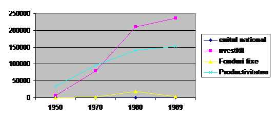 Productivitatea poate fi utilizata ca un indicator sintetic la nivelulul unei societati comerciale, dar poate fi un indicator de eficienta la nivelul unei ramuri industriale, sau la nivel national. In tabelul de mai jos prezentam evolutia productivitatii la nivel national in paralel cu evolutia volumului fondurilor fixe, a investitiiloe si a venitului national: