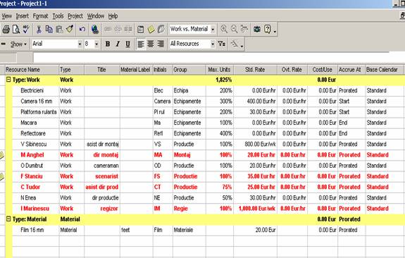 Denumirea resursei (Resource Name) - poate fi numele unei persoane sau functia/meseria pe care o are;