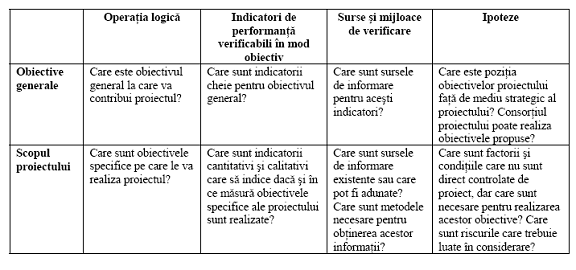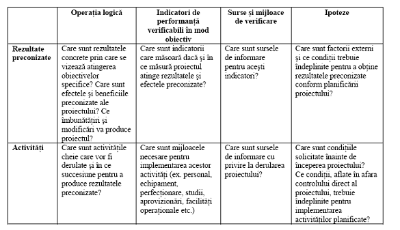 − Specificarea obiectivelor si rezultatelor;