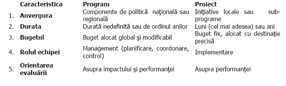 Pe de alta parte, din multe puncte de vedere, diferentele dintre programe si proiecte sunt notabile. Iata cateva dintre acestea: