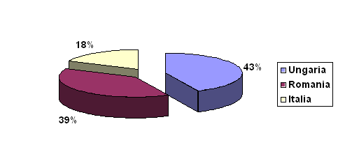 Facand o comparatie intre pietele interne si externe de pe care se aprovizioneaza societatea S.C. METIMPEX S.R.L., se poate observa ca majoritatea marfurilor comercializate provin din Ungaria (43 %), urmand Romania (39 %) si Italia (18).