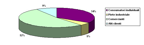 Se poate observa ca din totalul clientilor societatii ponderea cea mai mare este detinuta de catre comercianti (angrosisti sau detailisti), 52%, care cumpara bunuri si servicii pentru a le revinde la un pret mai mare.