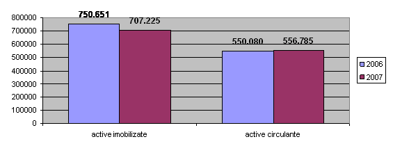 Valoarea totala a activelor imobilizate a scazut in anul 2007 fata de anul precedent, de la 750.651 lei in 2006 la 707.225 lei in anul urmator. Spre deosebire de acestea, activele circulante au prezentat o crestere usoara, de la 550.080 lei in anul 2006 la 556.785 in anul 2007.