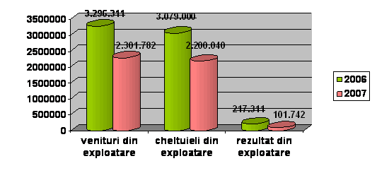 Concomitent cu scaderea veniturilor din exploatare in anul 2007 fata de 2006, scad si cheltuielile de exploatare, determinand inregistrarea unui profit din exploatare de 217.311 lei in anul 2006 si 101.742 lei in anul urmator.