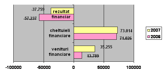 Daca in cazul veniturilor din exploatare acestea erau mai mari in anul 2006 fata de 2007, in cazul veniturilor financiare se intampla invers, acestea crescand fata de anul anterior, insa modificarea in nivelul acestora conduce la inregistrarea unei pierderi financiare, atat in 2006 cat si in 2007.