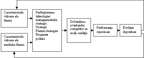 Asa cum reiese din schema, caracteristicile viitoare ale firmei si ale mediului ei de actiune vor constitui noi provocari pentru managementul strategic, care vor determina perfectionarea in continuare a tehnologiei acestuia, menita sa identifice caile de asigurare ale avantajului competitiv in noile conditii.