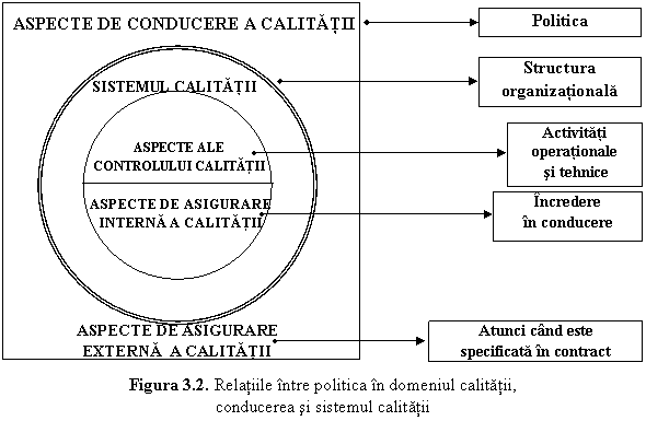 Relatiile ce exista intre politica in domeniul calitatii, conducerea calitatii si sistemul calitatii pot fi reprezentate conform figurii 3.2.