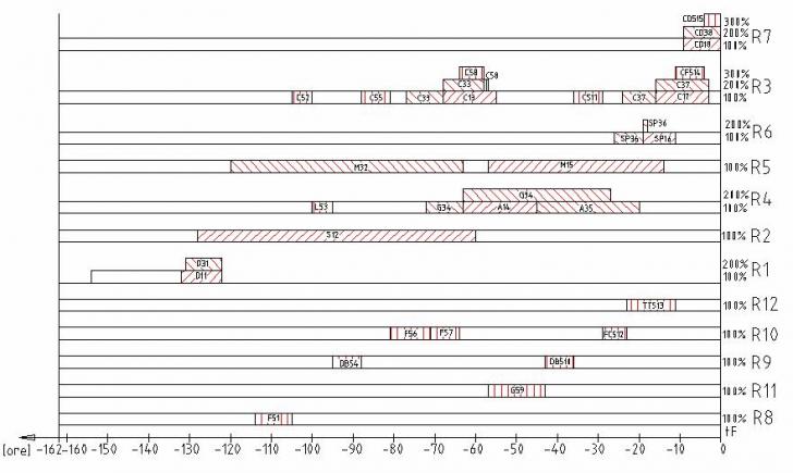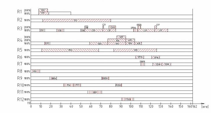 Inaintea lansarii in fabricatie a pieselor se analizeaza sarcinile de productie si se stabilesc resursele necesare. Pentru fiecare operatie se aloca resurse corespondente, cu o anumita intensitate, in functie de disponibilitatile de capacitate din perioada respectiva.