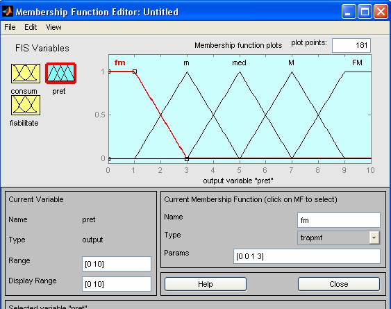 Pentru variabila de iesire pretul universul de discurs este cuprins in intervalul [o 10] si avand functiile de apartenenta: