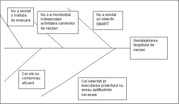 Dar reperele alese nu au fost SMART(specific, masurabil, acceptat, realist si cu un timp precizat): capitalul uman investit in acest proiect era slab: eram implicata in acest proiect ca sales administrator abia angajat in firma si nu aveam experienta necesara pentru a obtine noi conturi de sales; un salesman angajat la jumatatea anului 2007 despre care se credea in mod fals dupa cum se va vedea ca are experienta si tactica necesara pentru a putea obtine rezultatele cerute, nu era masurabil pentru ca managementul nu ne prezenta prin ce metoda avea sa fie masurat rezultatul, nu era acceptat de noi cei care il executam pentru ca nu intelegeam cum anume aveam sa ideplinim acest task si nu ne puteam identifica cu el, nu era realist pentru ca nu fusese analizata aptitudinile noastre de a-l realiza si nu avea un timp precizat pentru a ne planifica in timp actiunile. (BZT641 Management Performant, Volumul 2, Sectiunea 1, pag.11).