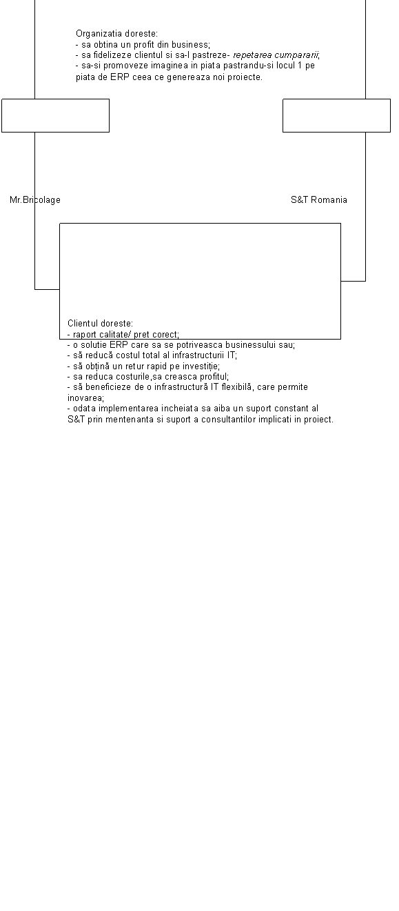 Din diagrama reiese ca produsul oferit de S&T Romania clientului sau Mr.Bricolage este unul de tip serviciu. Nu exista un bun care sa poata fi identificat pentru ca produsul SAP este o solutie software de optimizare a businessului.