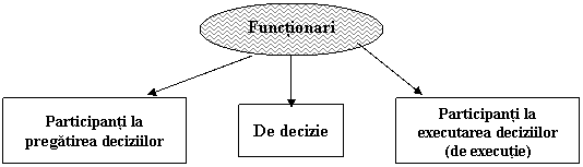 Din punctul de vedere al competentei decizionale, stabilita de lege, functionarii publici pot fi grupati astfel :