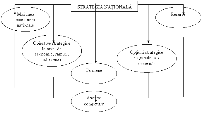 Ansamblul strategiei globale organizationale - mai ales nivelul firmelor mari, mijlocii si mici spre mijlocii - trebuie sa reflecte cerintele strategiei economice nationale (vezi figura nr. 5), a celei de integrare a Romaniei in Uniunea Europeana. Se asigura astfel orientarea dezvoltarii organizatiei in concordanta cu evolutiile macroeconomice principale prefigurate pentru perioada urmatoare.