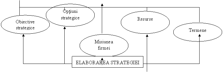 In prima etapa are loc elaborarea strategiei firmei. Aceasta presupune, asa cum vom prezenta pe larg in capitolul destinat strategiei, parcurgerea a trei secvente extrem de importante: