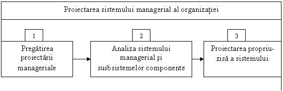 Aceasta etapa este cea mai complexa si dificila componenta a procesului de proiectare manageriala. In esenta, ea implica 9 pasi, asa cum rezulta si din fig. nr. 9.