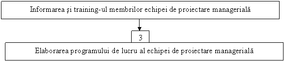 realizarea unui trening concentrat (maxim 2-3 zile) pe metodologia de proiectare utilizata. Prin aceasta se asigura fundamentul metodologic necesar proiectarii unitare a ansamblului sistemului managerial al organizatiei;